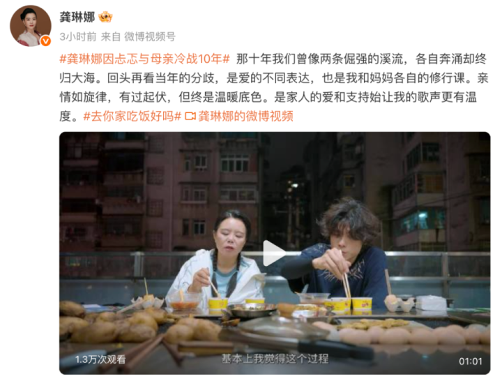 龚琳娜发文的同时还晒出了一段视频,视频中,龚琳娜与老锣在一处安静的房间内表演。